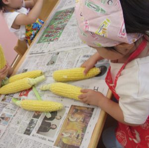 きれいにむいて、おきゅうしょくのせんせいに届けたよ。